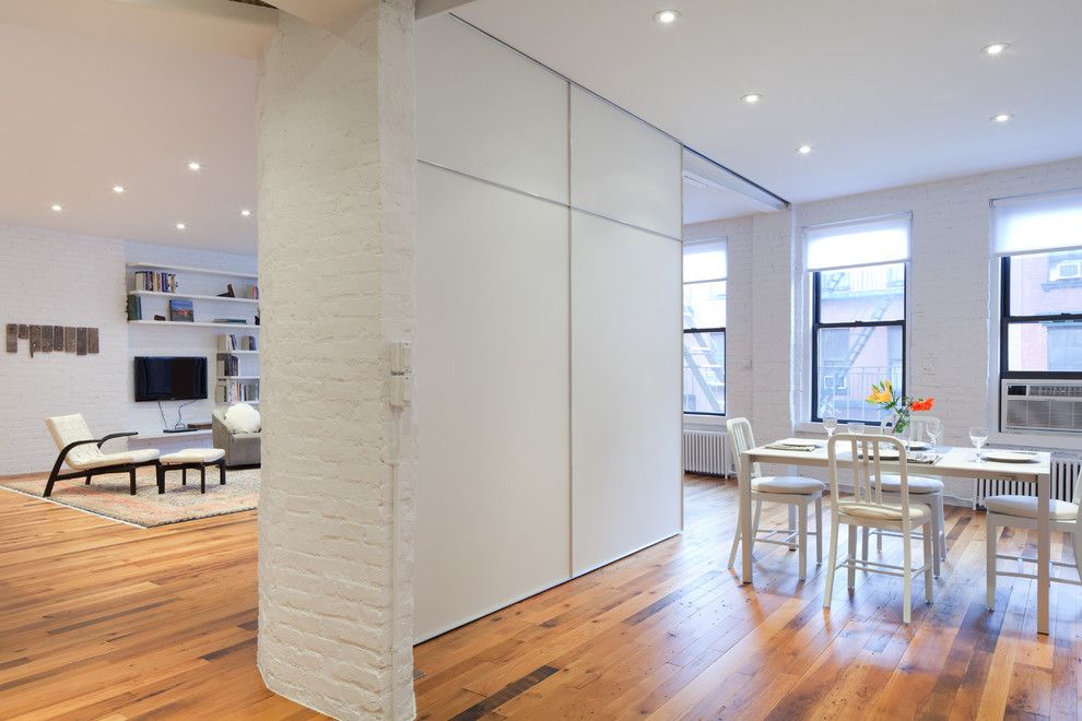 A fireplace, both real and made of drywall, can act as a space divider