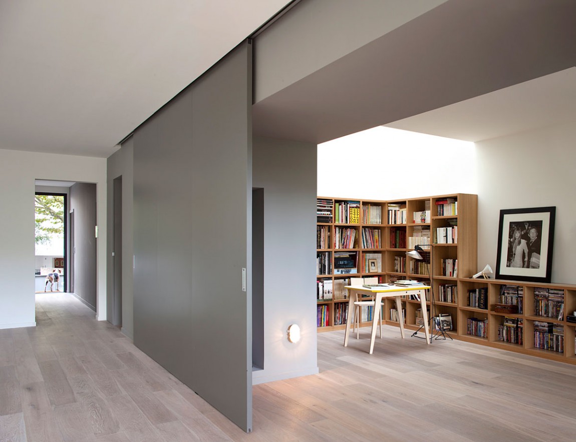 Unusual sliding partition from bookcases