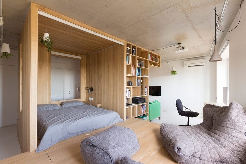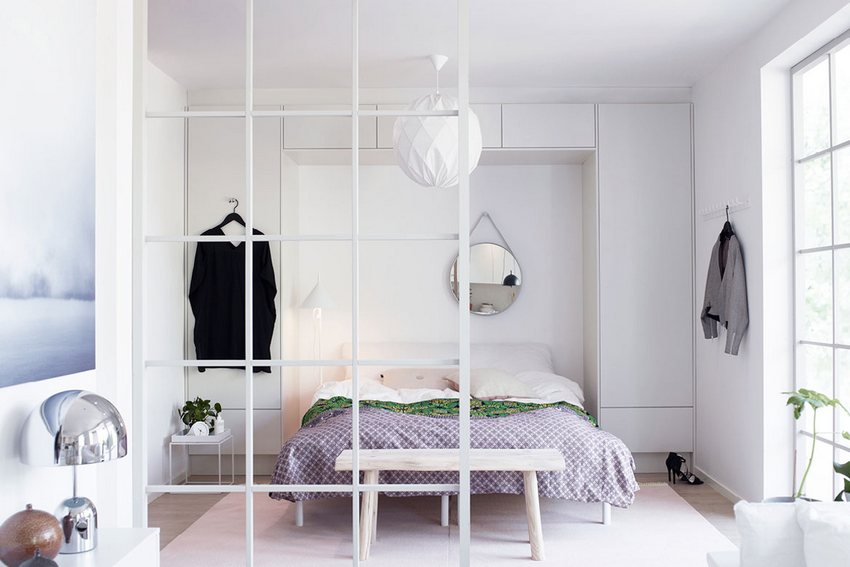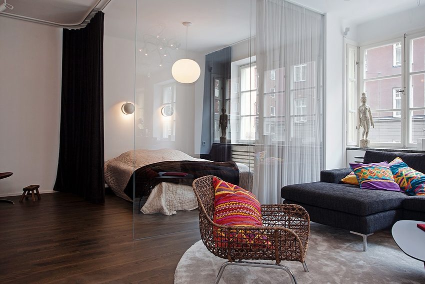 Zoning the space of a studio apartment with a textile partition