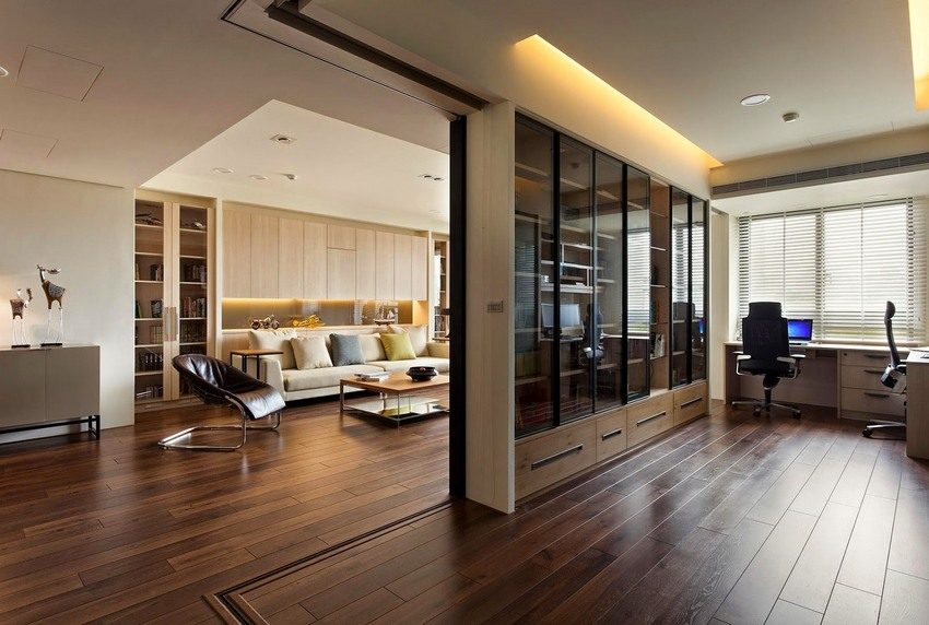 - It has high aesthetic data. Glass can be embedded in the interior of the room, made in any style direction. This is a universal solution. For better compatibility with style, glass partitions are bought with various decor made of wood, metal.