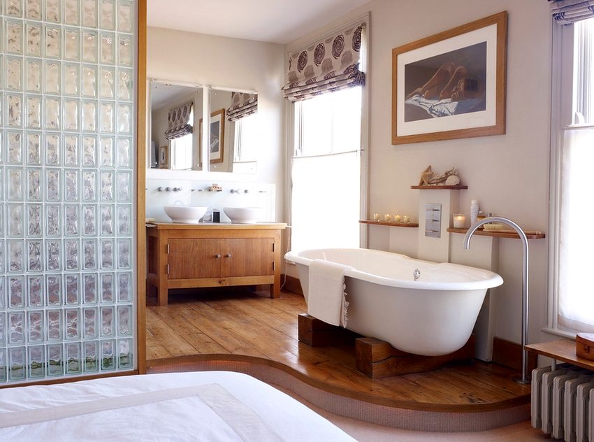 - Features of the room. To zoning a room with high humidity, glass and plastic are used. In the living room you can install fabric, wooden barriers. Also take into account the area.