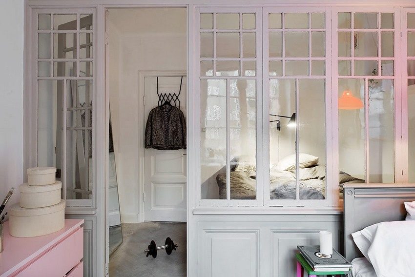 Area, style features often require the use of light, almost invisible materials for zoning a room. This can be called glass. It has a number of undeniable advantages: