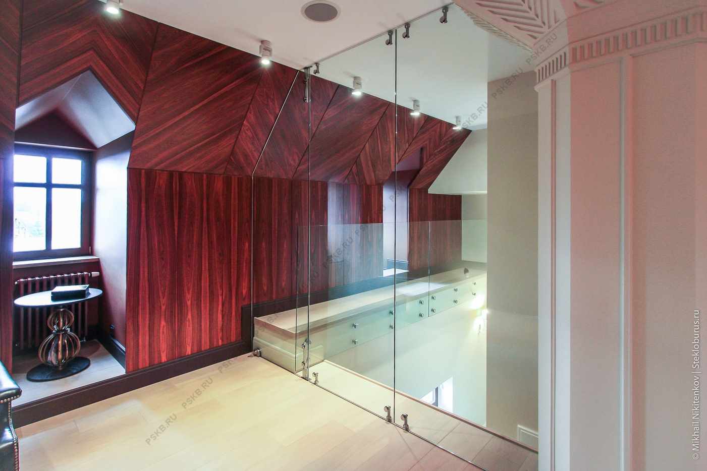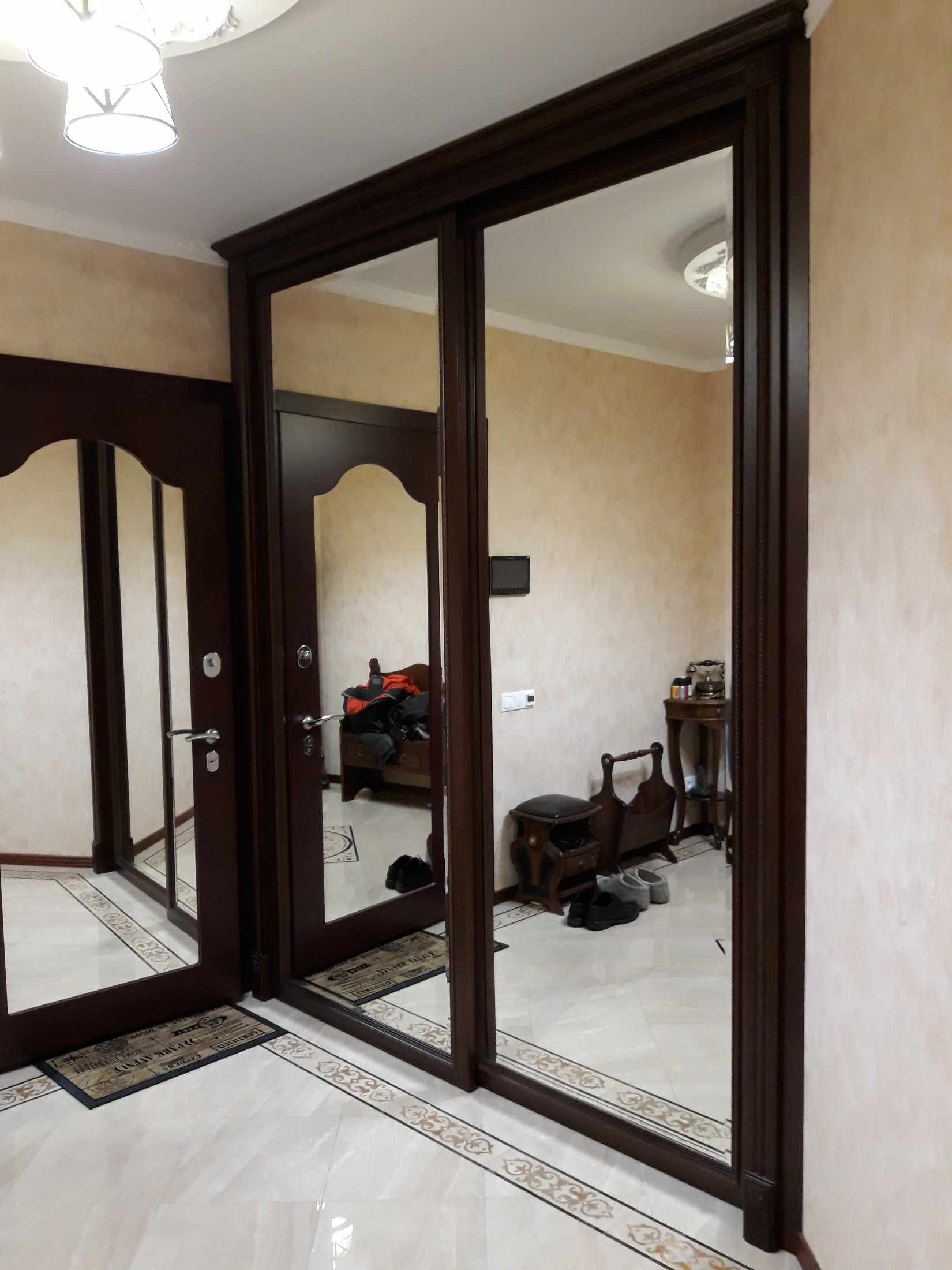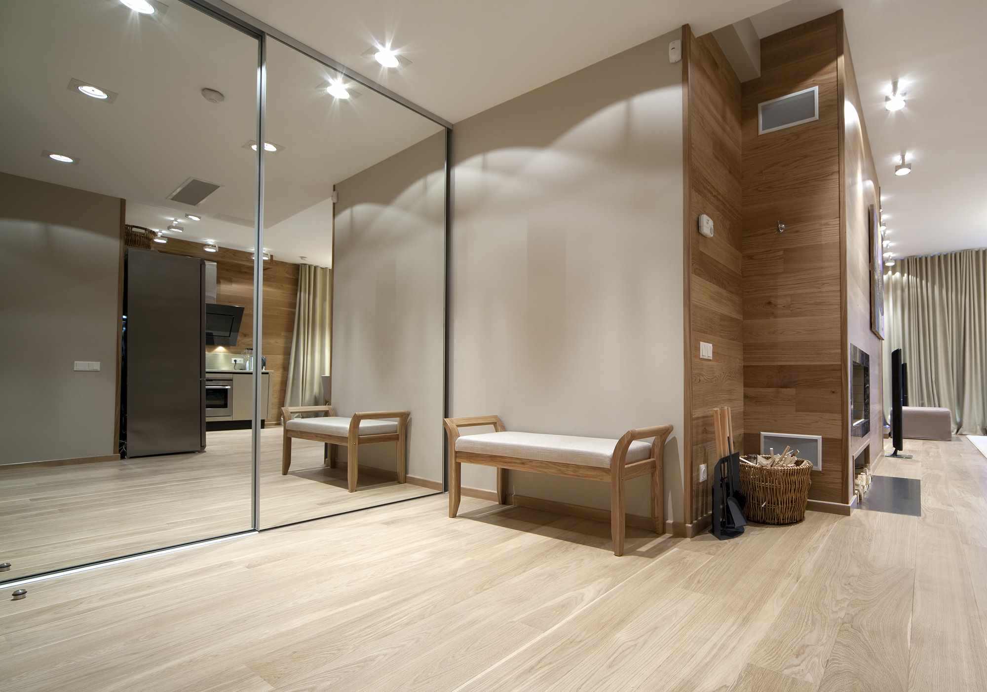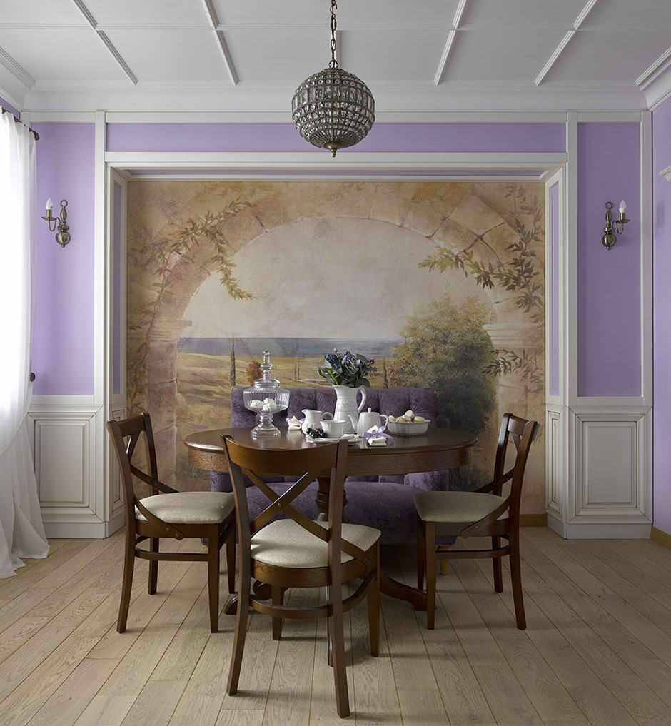 - replacement of the wall made of mirrors, furniture elements or textiles on the ceiling cornice;