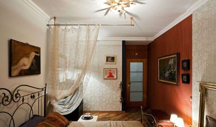 Design 1 room apartment in Stalin by removing partitions, turn it into a studio apartment. The walls can be leveled with drywall, having processed it with putty. Old plaster is best removed because it causes a bad smell, a hotbed of bacteria, mold. The ceiling can be leveled with putty or by installing a stretch ceiling.