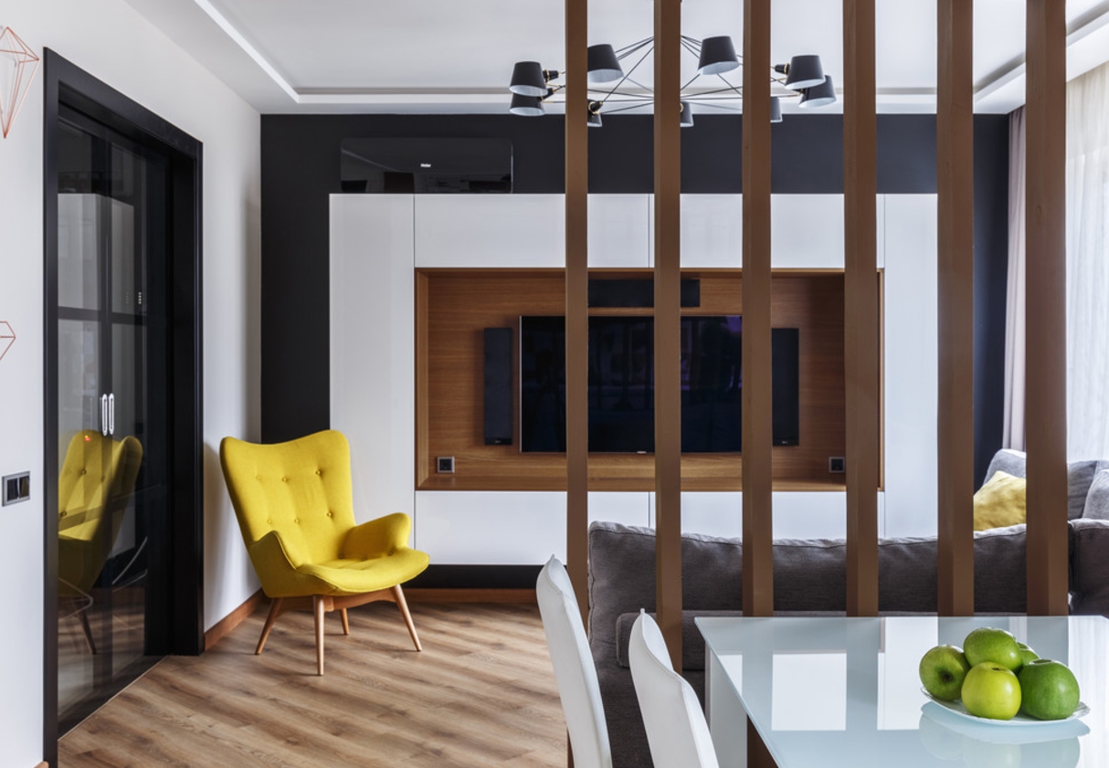 | Partitions | They allow you to create several rooms from one. Then you can divide the territory into different segments. But there may be a feeling of darkness, there will be less space. |