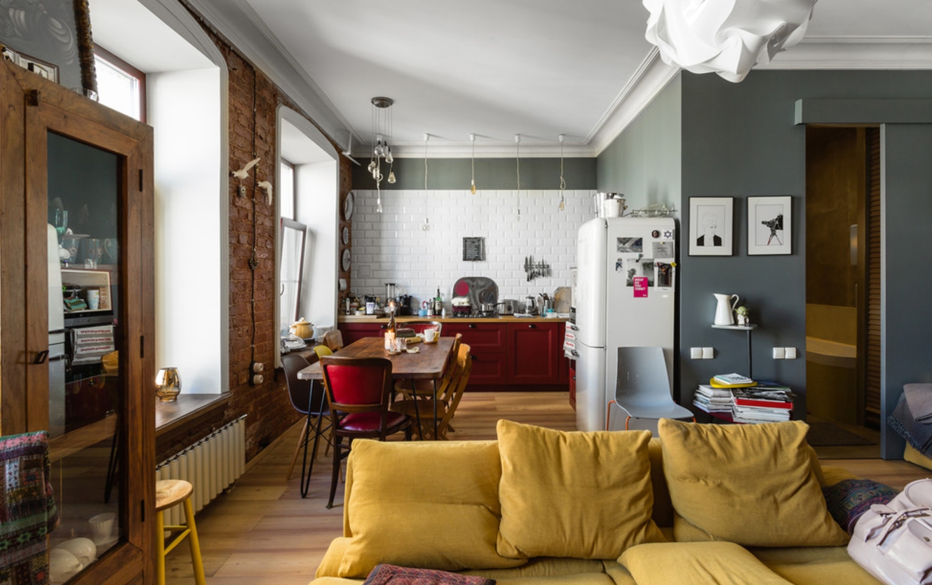You can turn a studio apartment into a studio. To do this, dismantle the walls between the room and the kitchen. As a result, you get a spacious room that allows you to conveniently accommodate everything you need. It is recommended to think over zoning to select separate segments in the general space. You can use a different floor covering, make a diagonal opening in the living room. The result is a spacious studio. To avoid problems, such as the smell of food spreading during cooking, get a powerful hood.