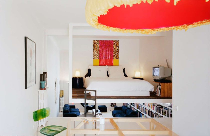 The bedroom here was placed on a pedestal, enclosing it with a glass wall.