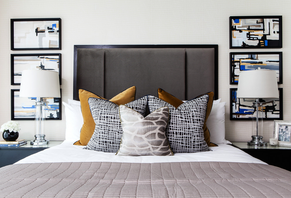 Pillows in tone of a sofa look boring, bright contrast options look much better