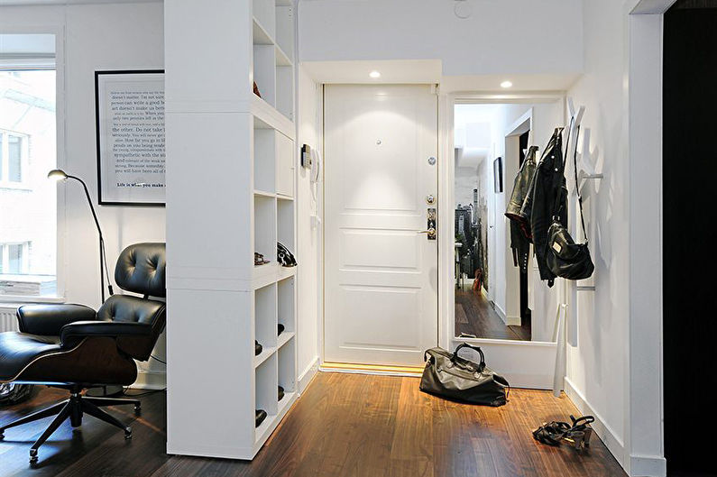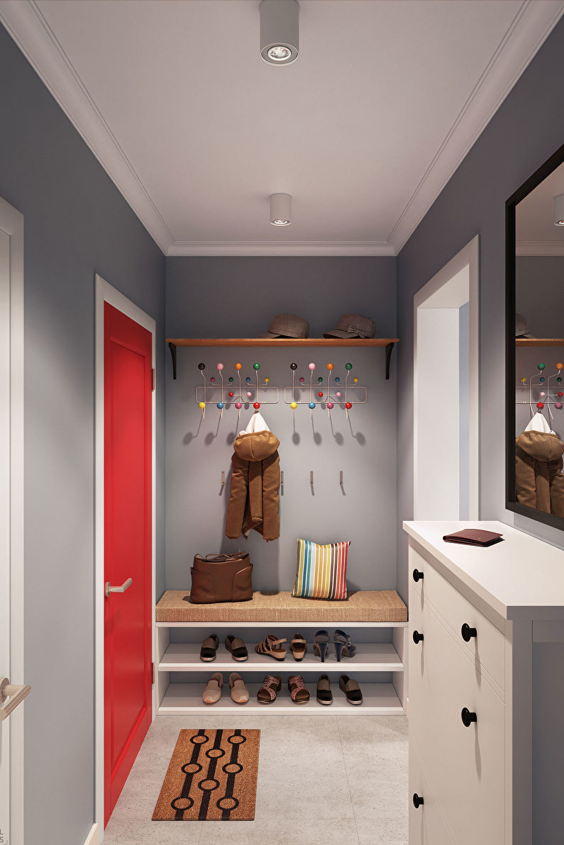 It is preferable that the color scheme is not too bright or dark, it is better to use light shades. They will visually increase the space, and a large mirror will expand it. Furniture should be modern and multifunctional. This will free up maximum free space.