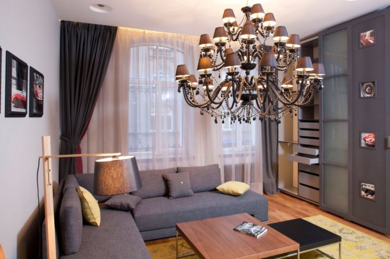 In no case do not hang a hanging chandelier in a room with low ceilings, otherwise you risk beating your head against it. Yes, and it will not look as spectacular as it might seem.