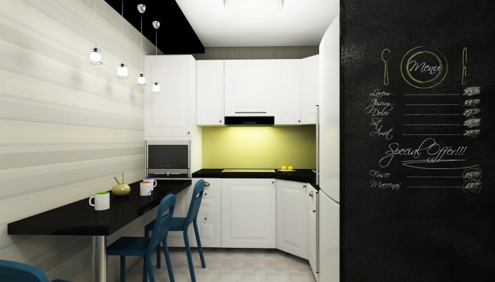 - Bar counter as a room divider. This detail will separate the kitchen from any other zone, replace a table.