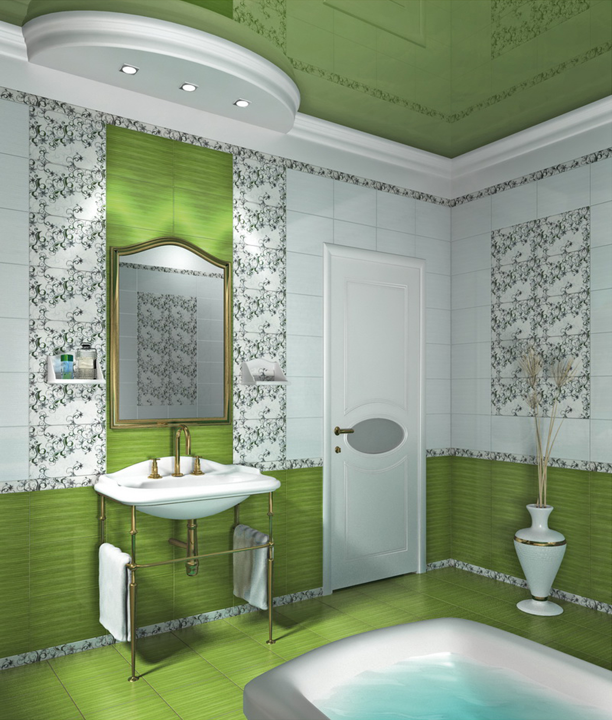 It can be easily integrated into the design of the finished bathroom. Light green accessories are well suited for white, pink and blue tiles.