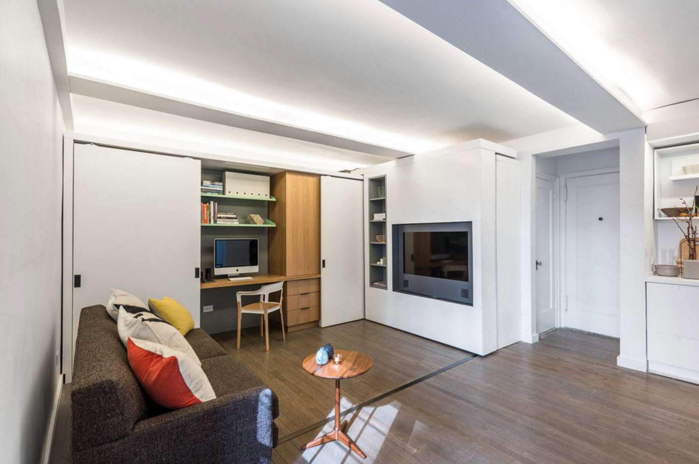 It is important to use functional pieces of furniture that save space. A minimum of detail will free up space. Use techniques to visually increase the area, including mirrored surfaces, bright colors, maximum light.