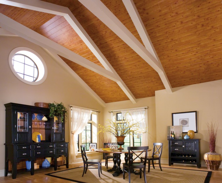 The ceiling decorated with wood can create the illusion of your own wooden house in a simple city apartment. Also, a wooden ceiling is an ideal exit for apartments located on the top floor of multi-storey buildings, since the material has good thermal insulation qualities. Apartments located below the product will be pleased with excellent soundproofing. This means that finishing the ceiling with wood, in any case, will benefit everyone.