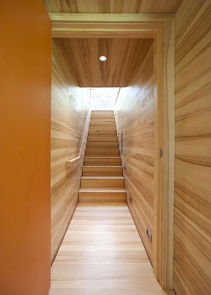 - The second case involves the installation of wood in light, natural tones, the use of dark colors will only aggravate the situation.