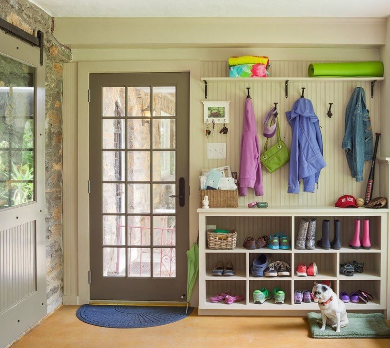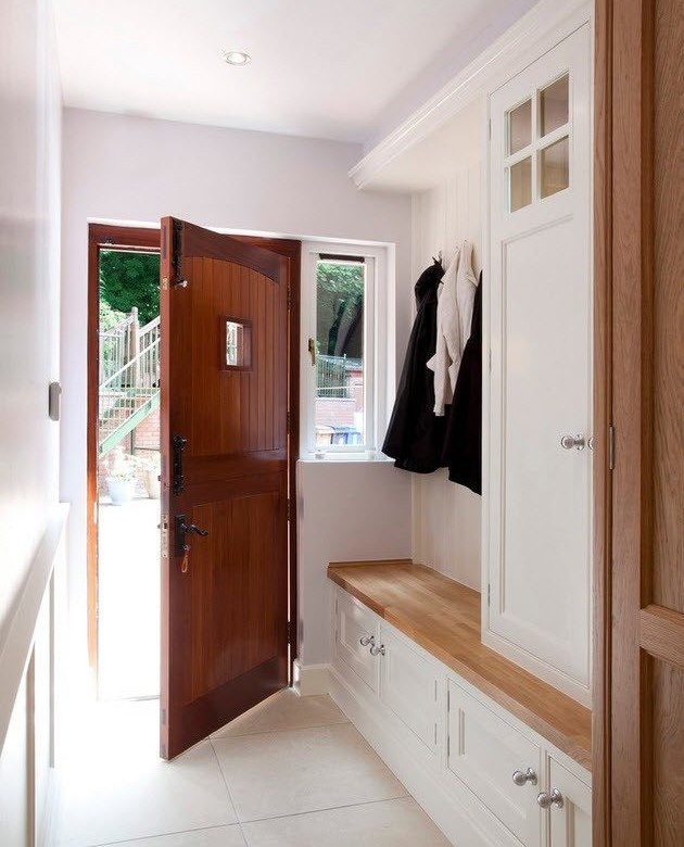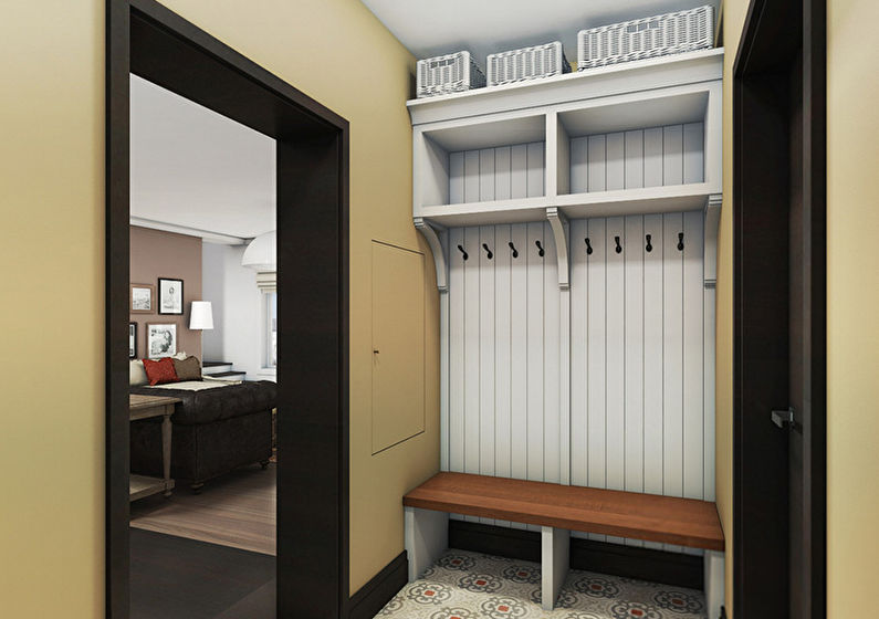 The storage system in the hallway should consist of at least three compartments: for hats, for clothes and for shoes