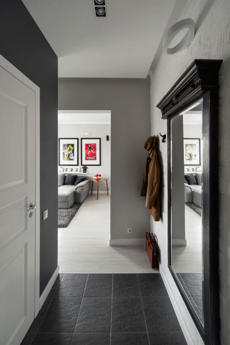 The main task in the interior of a small hallway is the visual increase in space