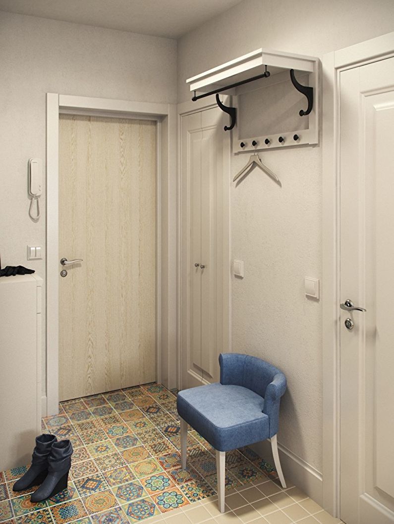 A small entrance hall is not a reason to unconditionally refuse bright saturated colors. They may be present in accessories and decorative elements.