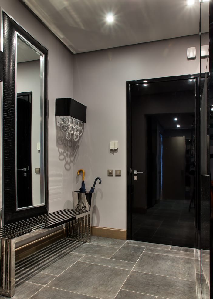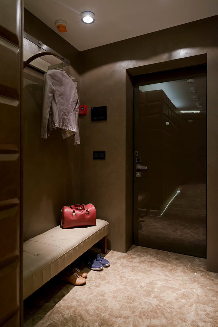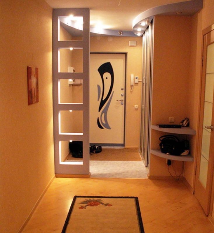 It is also recommended to replace the wiring and think through the lighting design of the entire apartment and the entrance hall separately in order to maximally compensate for the lack of natural light. At the same time, hold the built-in backlight in the built-in wardrobes, you can add a diode tape along the perimeter of the ceiling and along the baseboard along the corridor.