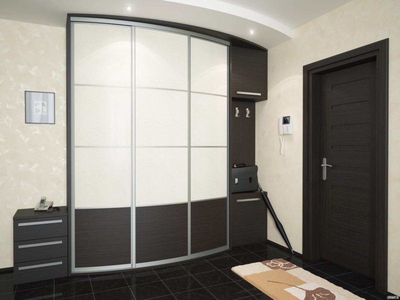 Spaciousness of the “compartment” is its advantage; a lot of clothes and shoes will enter the shelves and niches right up to the ceiling. In this case, the cabinet needs a minimum of area. Instead of a facade, you can put mirrors - small hallway will seem twice as much.