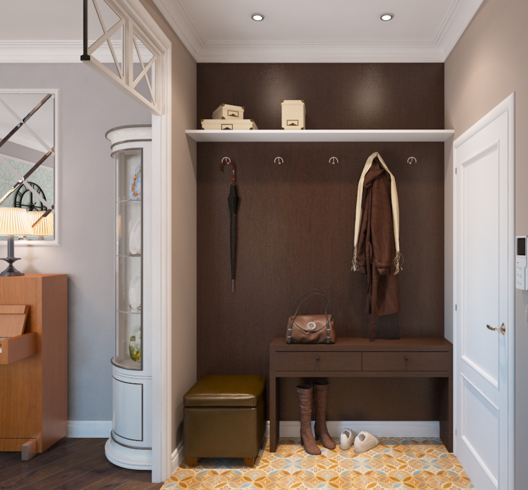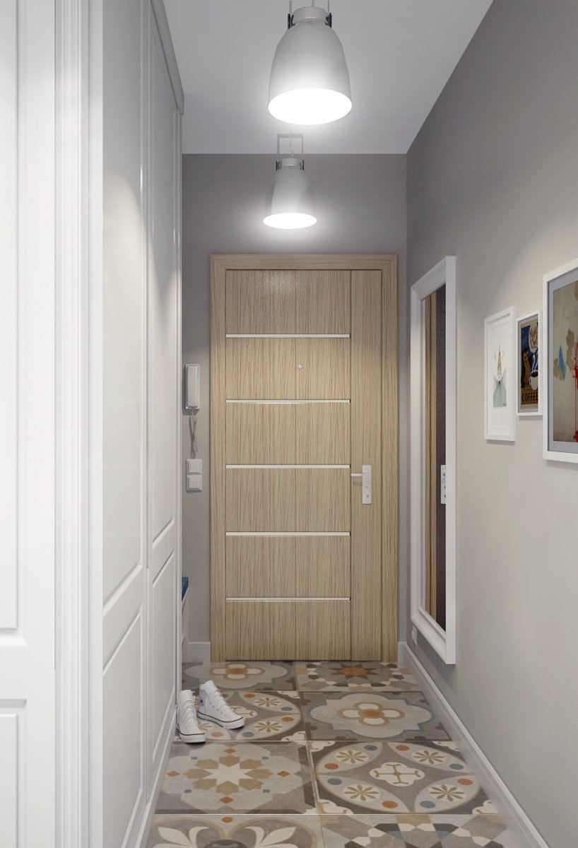 Dust and street dirt get here, umbrellas, shoes and outerwear are stored here. The practicality of finishing materials is a priority, the design seems to go by the wayside.
