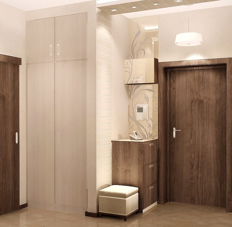 The entrance hall in Khrushchev is often a vestibule in which it is difficult to place the desired furniture and make this room functional.