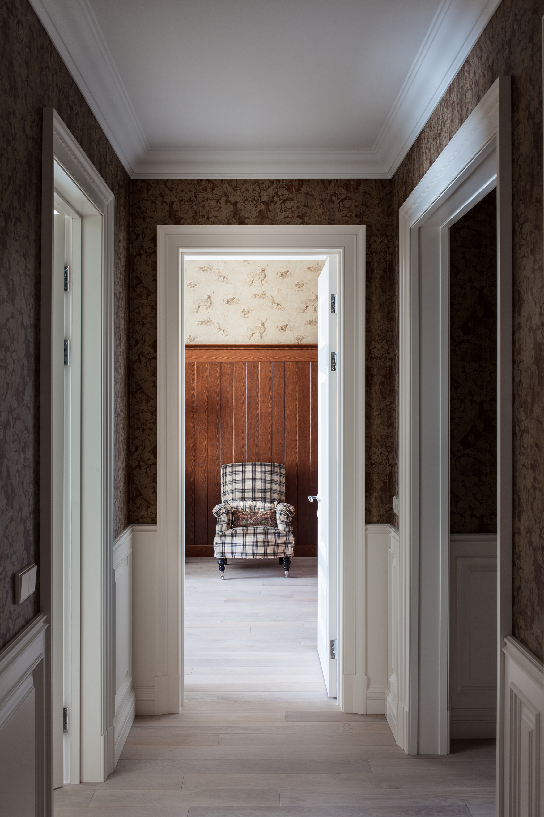 The design of the corridor should be in harmony with the design of the remaining rooms. Visually, interiors can be combined due to common motives, for example, in the form of stripes in furniture upholstery and on walls