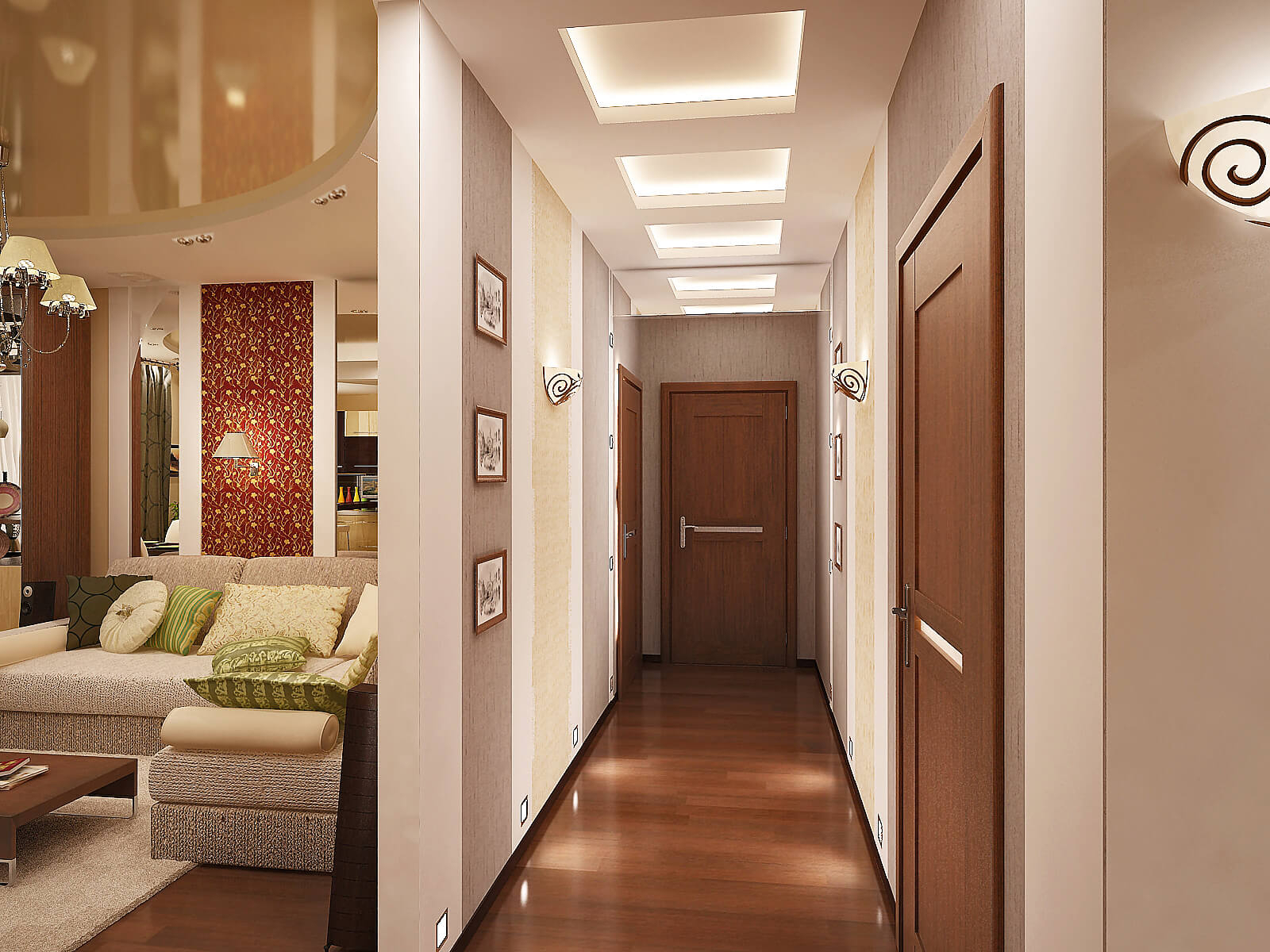 The first place anyone enters when entering the house is the entrance hall. It is important that the room is distinguished by harmony and practicality. Features of the room do not always allow you to realize your ideas. But you can choose the actual design of a long corridor to emphasize the pros, and hide the flaws.