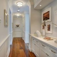 In many corridors there is no source of natural light, which complicates the task of choosing the perfect style. Therefore, white and its tones will prevail. But you shouldn’t completely make the hallway white. It looks boring and impractical. Even when designing a single gamut of the ceiling surface and walls, it is necessary that they differ by a couple of shades. The upper part of the room is lighter.
