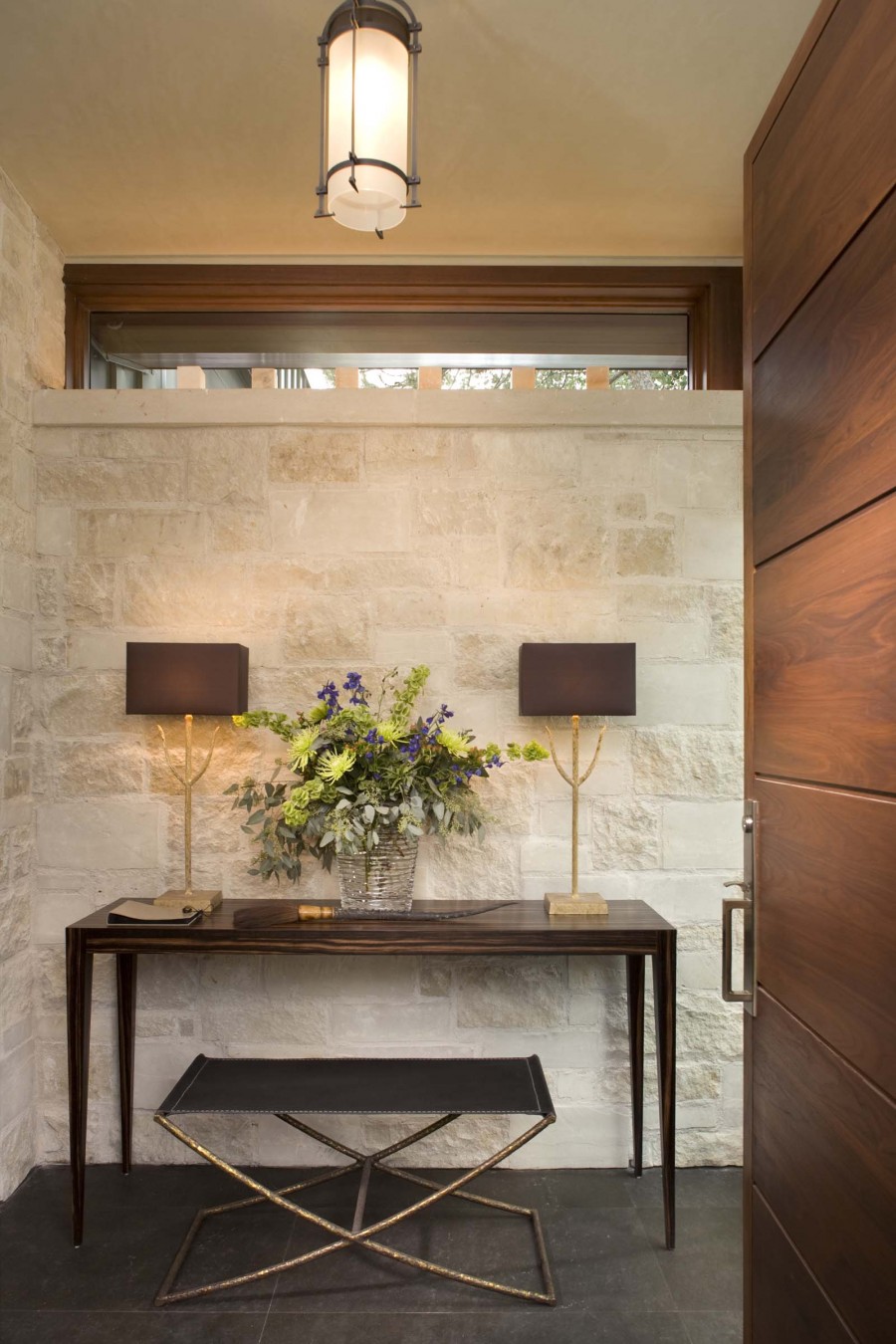 The cost of the stone is quite high, but it is not necessary to clad the entire entrance hall. To revitalize the interior, just close the sections of the walls that are most dirty