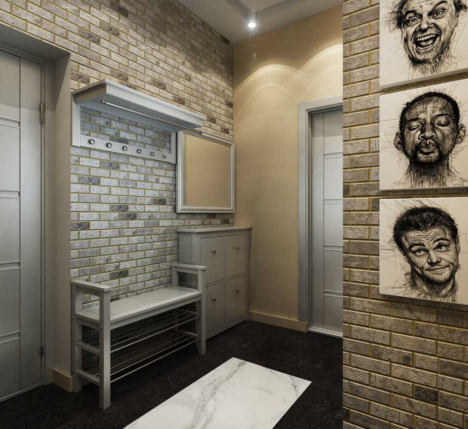 Brickwork is a typical hallway decor used in different styles, for example, loft or urbanism.