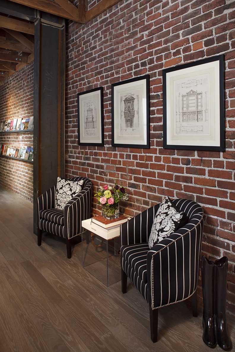 Wallpaper in the form of a brick wall will harmoniously look in such a design