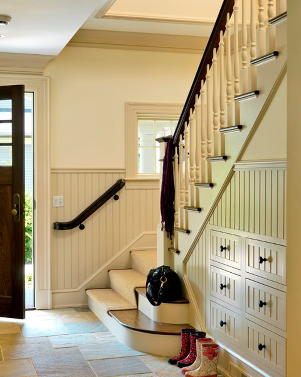 To make the design of the hallway in the house as functional as possible, experts recommend not to miss the chance to use the space under the stairs.