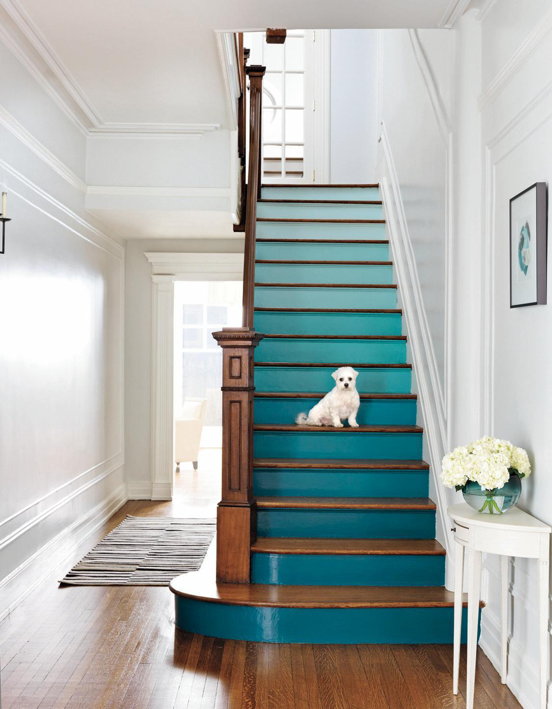 - Cover the steps with a rug to visually reduce the size of the structure;
