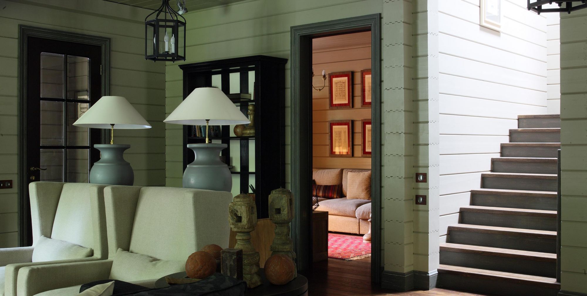 No vivid accents. A large oak staircase does not "fit" into the overall interior. For country, breeds like birch or pine are suitable. It is not distinguished by luxury, but embodies the rustic comfort.