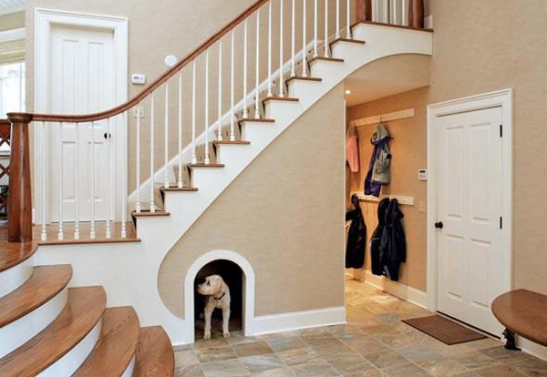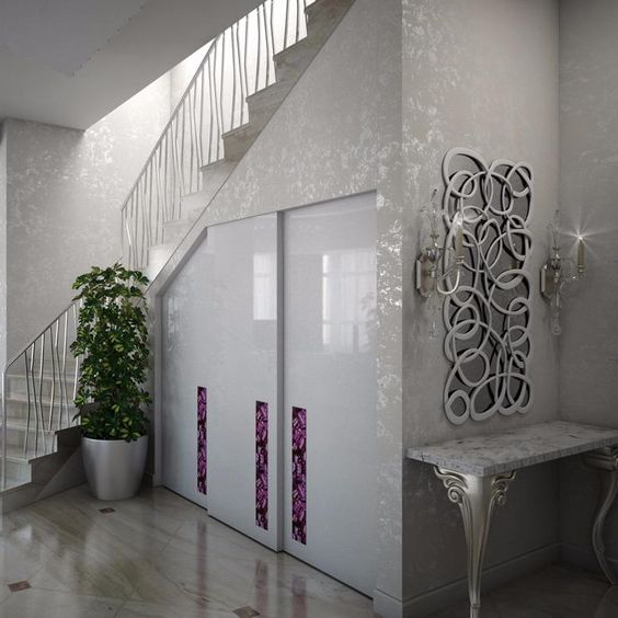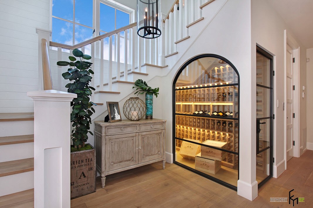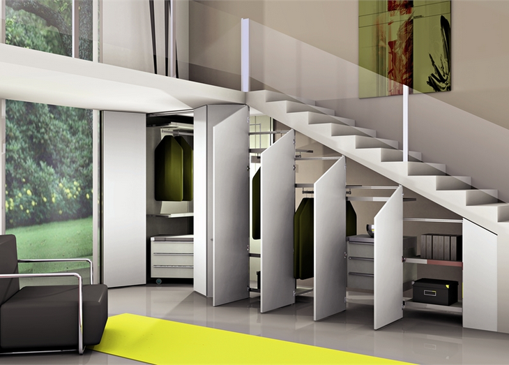 The staircase has impressive dimensions and takes up a lot of space. Therefore, it is important to use as much as possible every square meter available. Any area is worth turning into usable. One option is the organization of cabinets.
