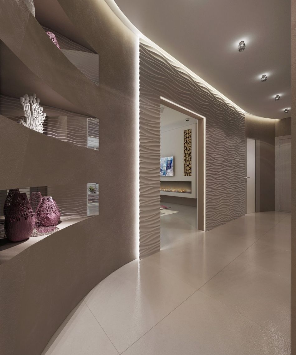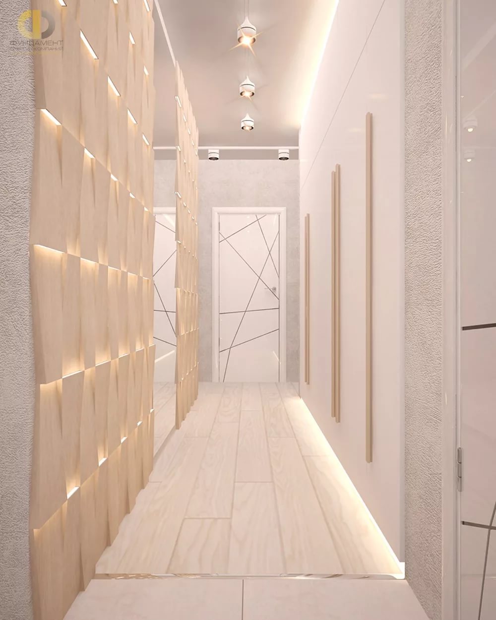 For the hallway space, as well as for other rooms, competent light is very important, able to correct the imperfections of the room.