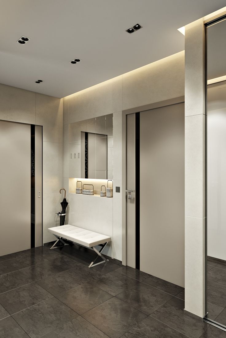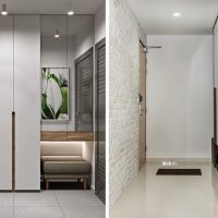 Studio apartments are distinguished by their compactness, which means that the entrance hall should be as functional as possible. High cabinets with convenient storage compartments will be especially relevant here. If it is possible to equip a small dressing room in a niche, then let this place become a real gathering room with good light, a mirror and shelves for cosmetics and all the necessary elements of everyday wardrobe.