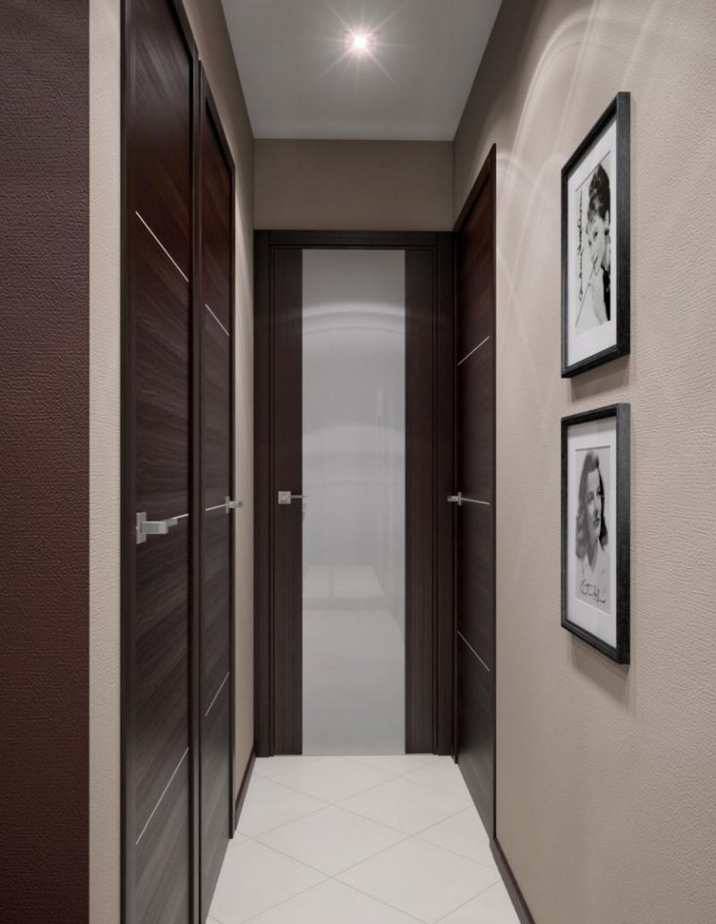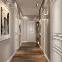 The choice of colors in the corridor depends on its size. For example, in a narrow and small hallway, it is necessary to use only light colors and pastel shades. Ideal beige, milky, gray, light brown, blue, light yellow. Dark tones are acceptable in spacious rooms, but subject to high-quality lighting.