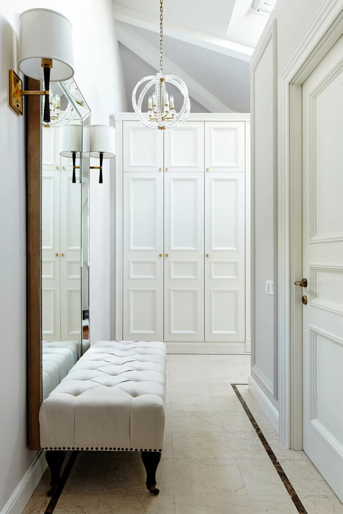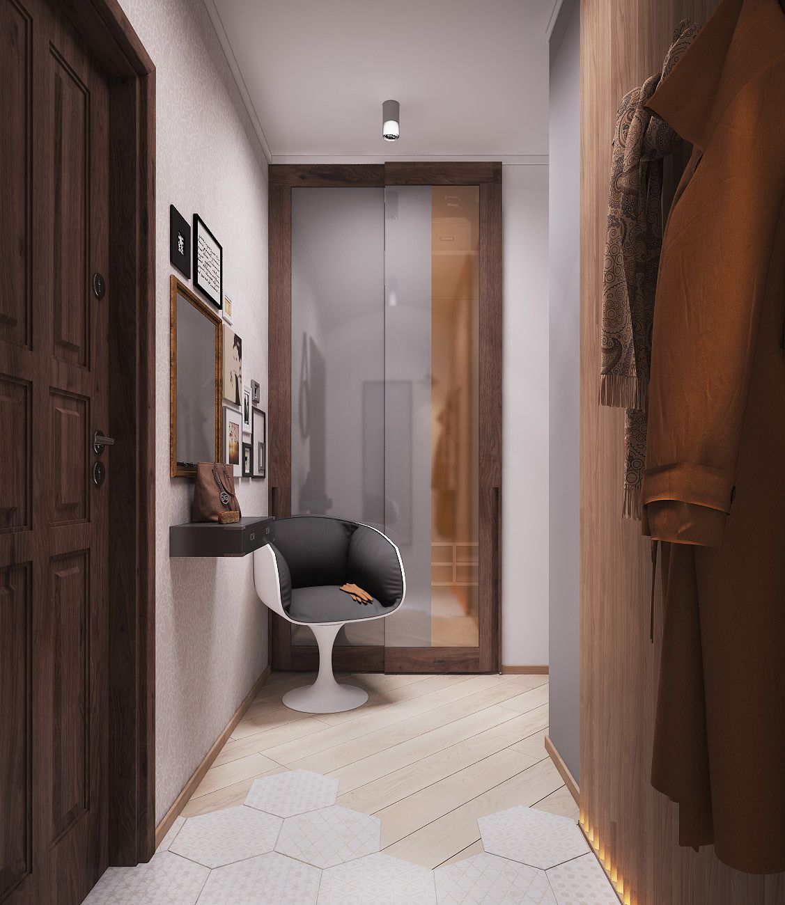 If the corridor in the apartment is too narrow, then in the design project, it is better to replace the cabinet with a floor or wall hanger.