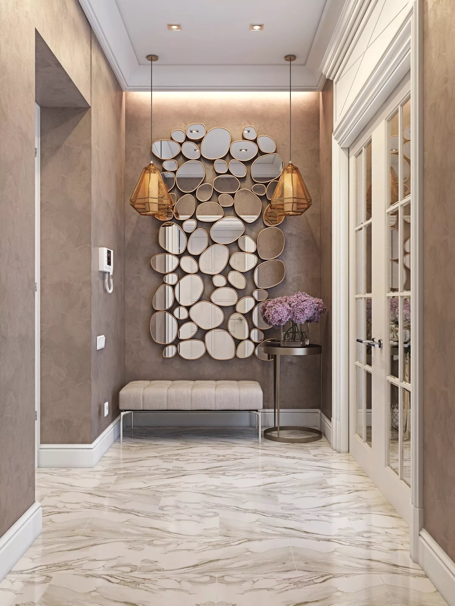 Mirrors should be well lit. Firstly, in this way they will give a real reflection, and secondly, by reflecting the light, they will also make the space wider.