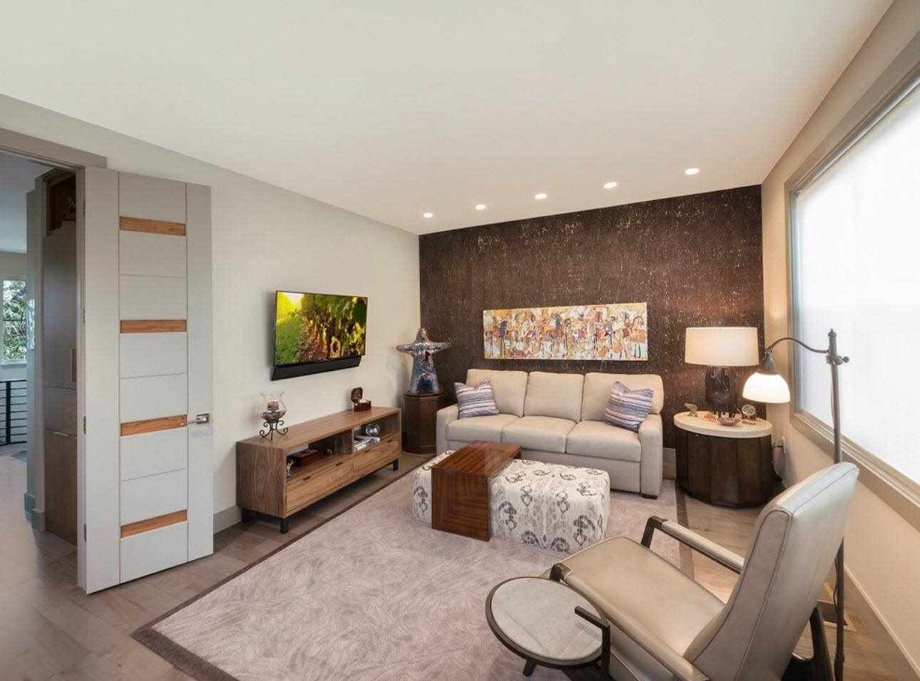 Cork wall decoration in the living room is an incredible space for imagination. There are no special restrictions, since there are no serious chemical or mechanical effects on the walls. The design style will depend solely on the owners of the apartment and their wishes.