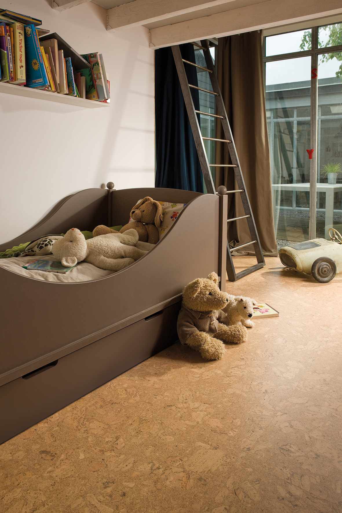 When designing a bedroom or children's room options are slightly less. But cork for such rooms is an ideal choice, as the material is environmentally friendly. But the coating must be applied correctly. The advantage of using cork finishes in children's rooms can be considered safety for babies, which in this way can really be protected from many injuries. When you hit a cork, it is almost impossible to hurt yourself badly, to earn an abrasion or a scratch.