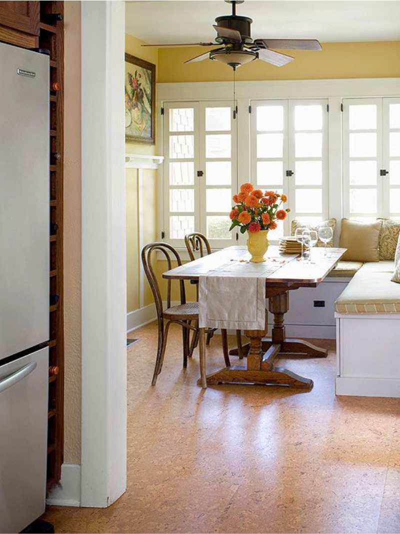 The kitchen in decoration is considered one of the most difficult rooms. This is because there is a difference in temperature and humidity. Most often, washable wallpapers, plastic, and tile are selected for the design of the kitchen. But cork is also acceptable in the kitchen, but it is worth considering its negative quality - absorption of all odors.