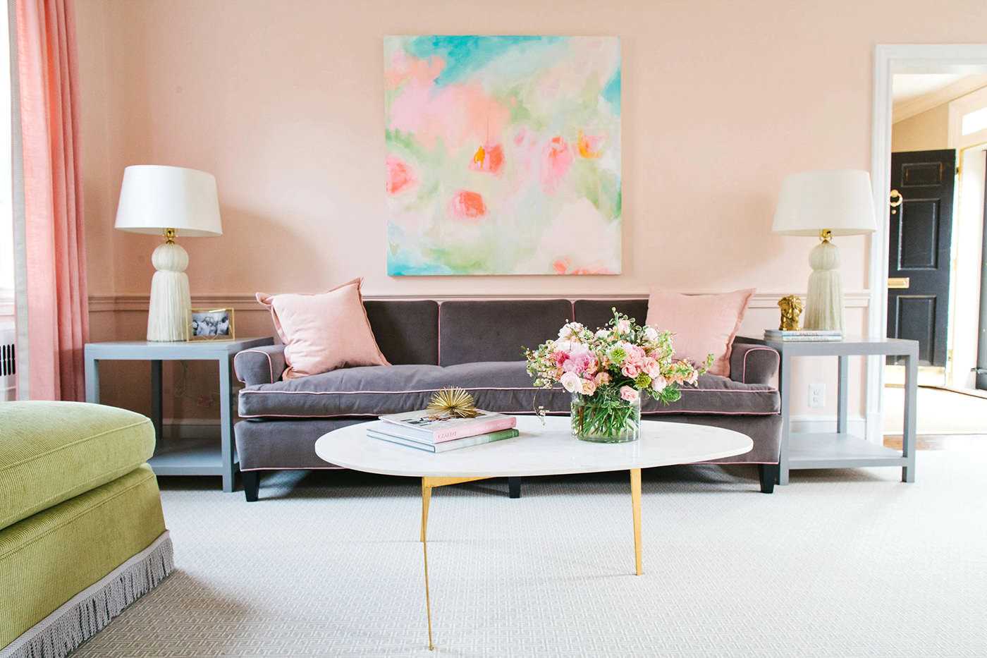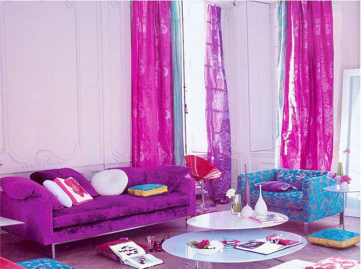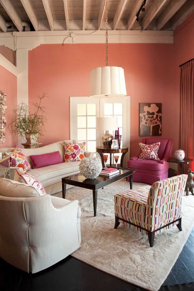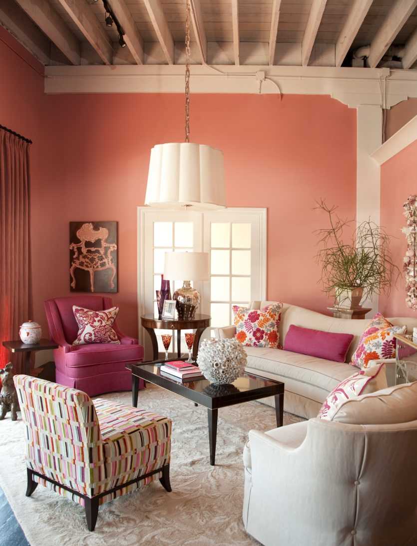 If you want to add pink to the living room or bedroom, you need to understand that it can get bored quite quickly. The living room can be decorated in rich colors, in the bedroom it is preferable to pastel shades. To make the sleeping room cozy, it is not necessary to paint the whole wall or ceiling, a few bright details, for example, a carpet, bedding, a lamp, are enough. In the living room, you can follow the same pattern, choose the color of the upholstery of the sofa and chairs.