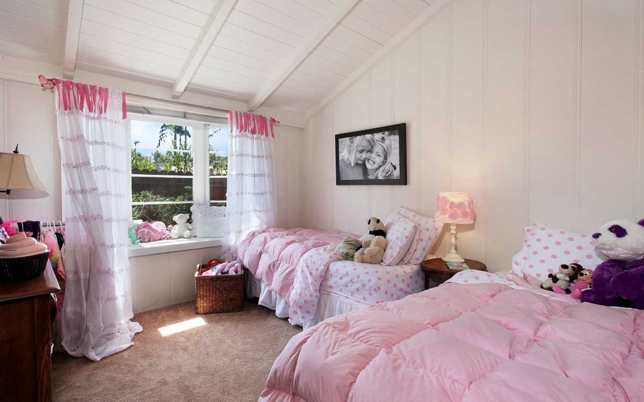 Do not overlay color on color. For example, if the furniture is pink, you should not buy textiles of the same color on it. Or pick up a carpet or curtains to the pink ceiling.