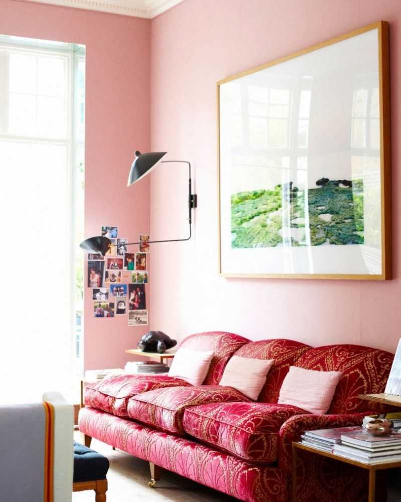 This shade is allowed to apply in the design of the style of any room. But, the main thing to remember is that each style decision has its own principles and limitations. Retro and pop art allow the presence of bright pink tones paired with classic black, white, orange, turquoise. The Scandinavian style “loves” rich pink details, the classic direction takes only light shades.