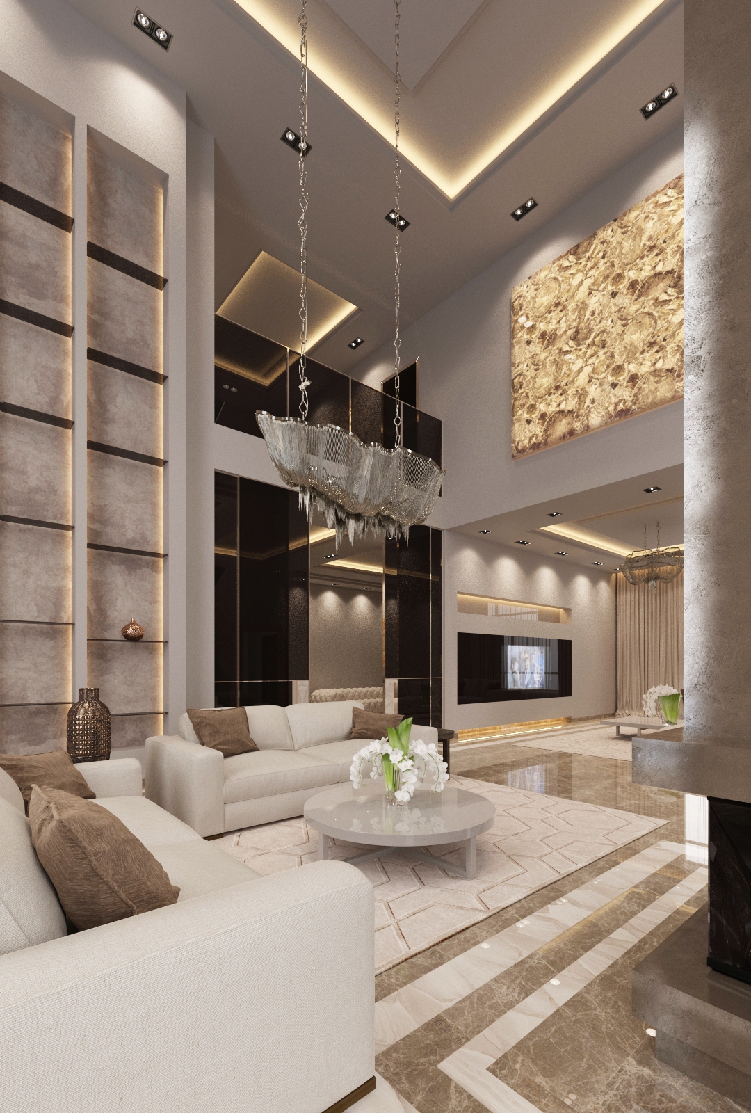 Chic room design with mirror floor