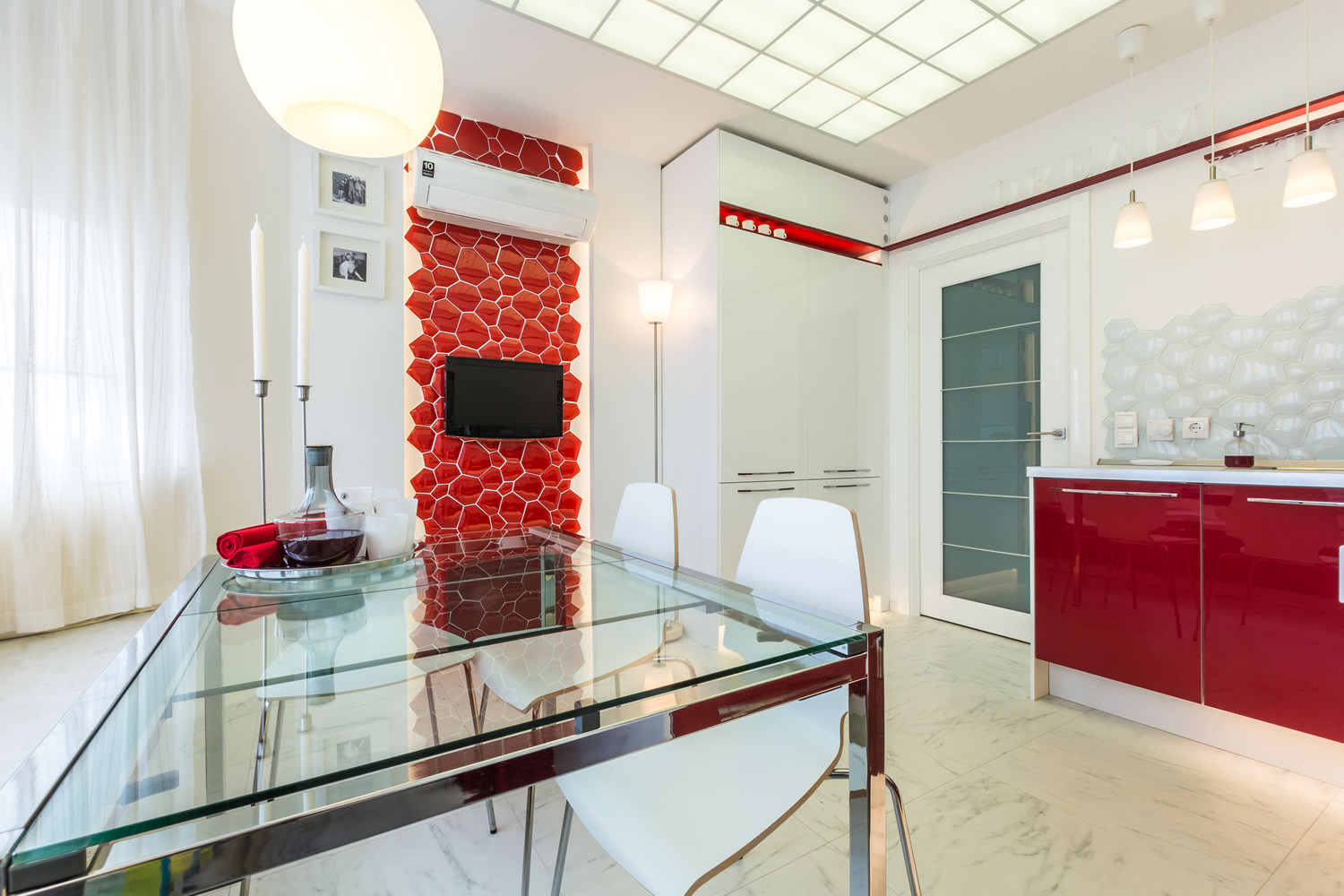 It has already been noted that luxurious interiors are suitable for decoration in spacious apartments. Indeed, for the style of glamor it is important that there is a lot of space and light in the room. To further emphasize luxury and emphasize it, use mirrors that reflect various surfaces, thereby increasing the visual area of the room.Strengthen the glamorous effect helps bright accents in the apartment and minimalism. It is not worth loading a room with a lot of details, even expensive and luxurious.