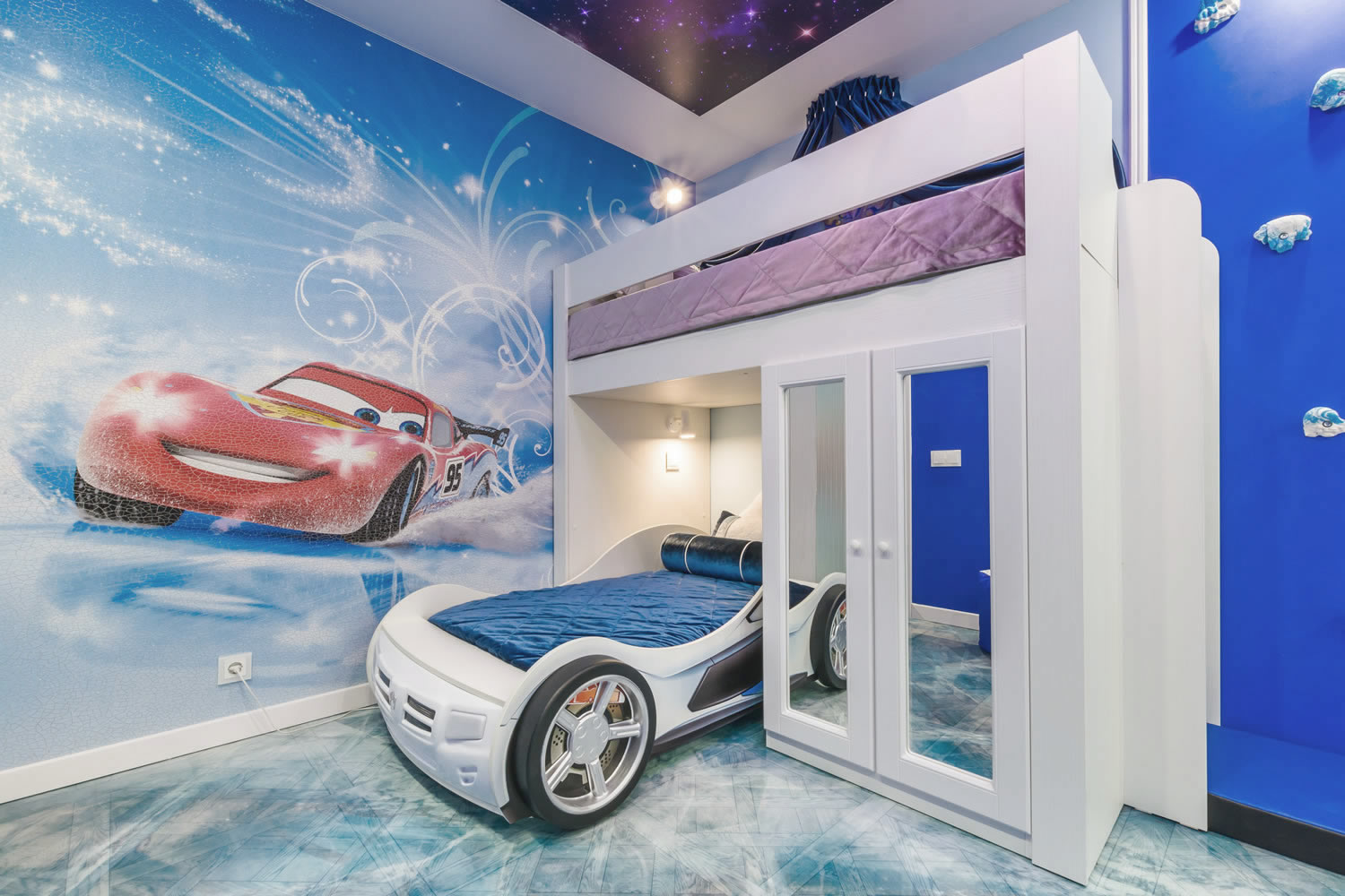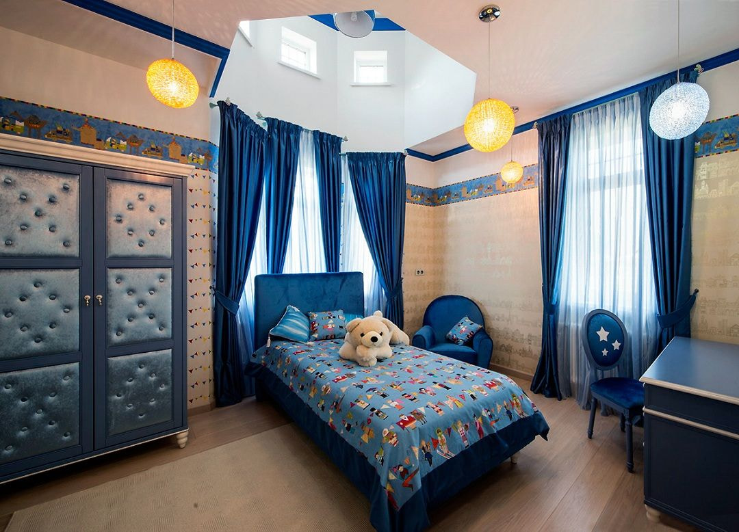 A large amount of blue in the interior design of a room for a child is not recommended. Despite the fact that this shade is considered masculine, many of its tones are perfect for the princess's room. All variants of blue can be easily diluted with white. With the appropriate design, you can easily create a marine style in the room. It is also relevant for placement in the zone of intellectual labor for better concentration and attention.
